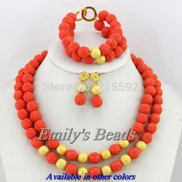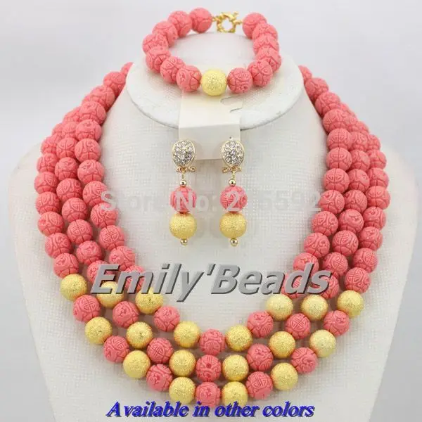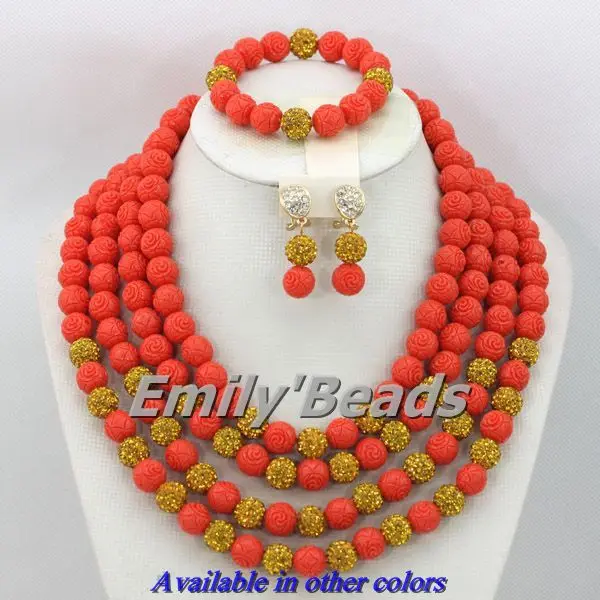 Colorful Nigerian Wedding African Coral Beads Jewelry Set 3 Layers Indian Bridesmaid Necklace Jewelry Set Free Shipping CJ220US$ 93.40/set |